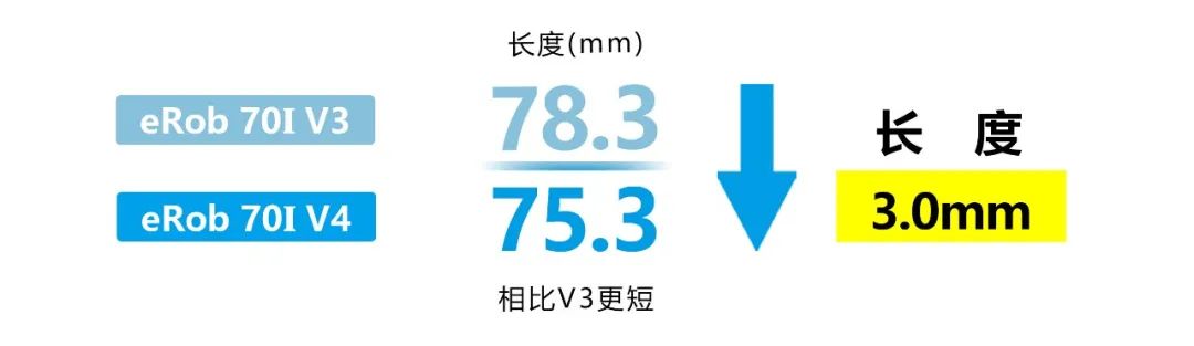 eRob 70I V4 長度縮短近4%,使內(nèi)部結(jié)構(gòu)更緊湊,體積更小。