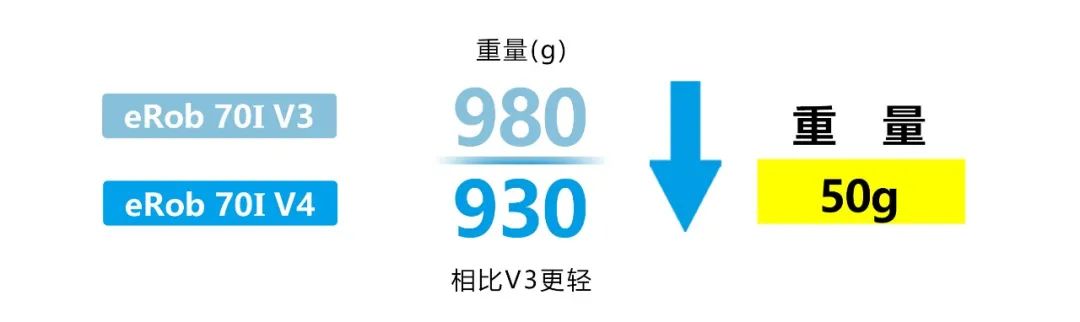eRob 70I V4重量減輕5.1%,使機(jī)器人更輕量化,組裝更靈活。