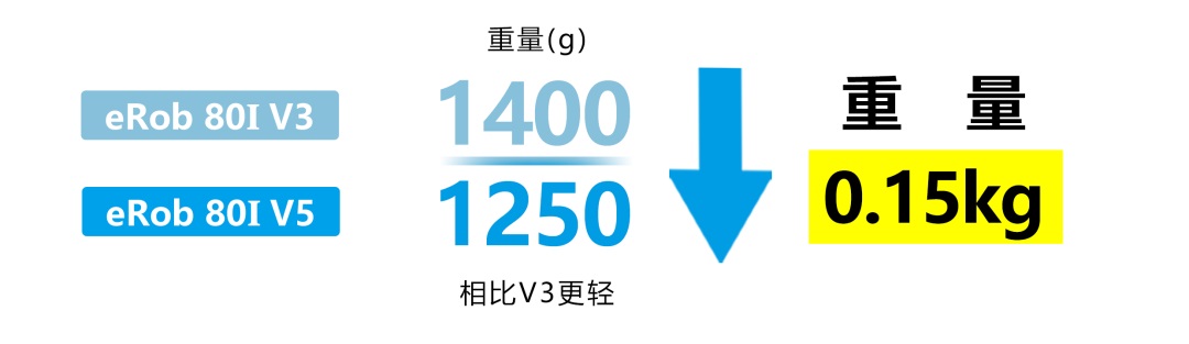 eRob 80I V5重量減輕近11%,使機(jī)器人更輕量化,組裝更靈活。
